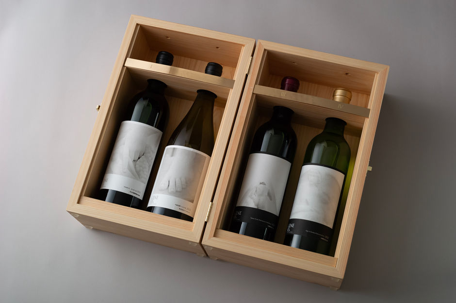 GENESIS 日本ワインセレクションは9ワイナリーから12本のワインが集められました。それぞれが4本ずつ灌木を利用した派ハンドメイドの木箱に納められています。販売はそれぞれボックスごとの販売と三つのボックスをまとめたフルセット販売をご用意しております。